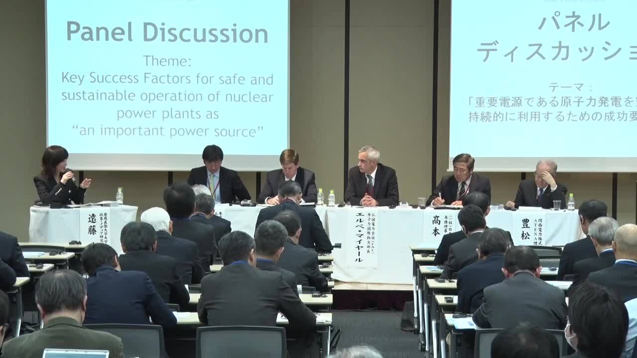 遠藤典子特任教授による進行のもと、「重要電源である原子力発電を安全かつ持続的に利用するための成功要因は」と題するパネルディスカッションが行われ、各パネリストからの冒頭プレゼンテーションの後、東大山口教授により提示された、今後産業界が担うべきコア機能(①事業と技術、②規制と法制、③社会と政策)を切り口にしながら、原子力産業界やATENAが果たすべき役割について議論が行われました。